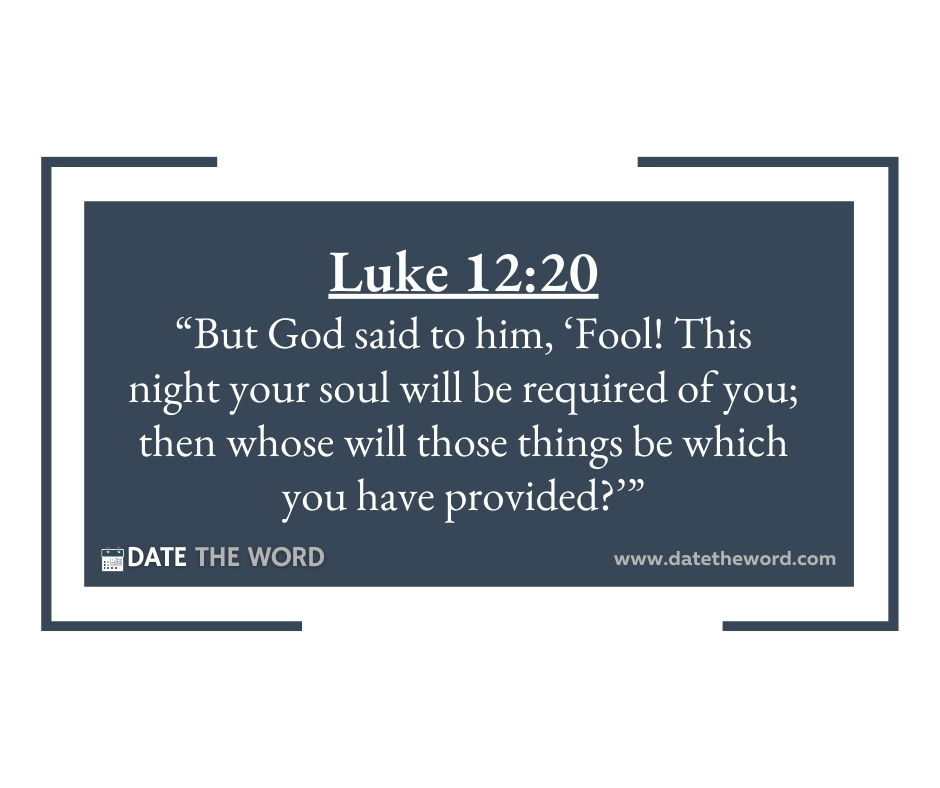 Luke 12:20 “But God said to him, ‘Fool! This night your soul will be required of you; then whose will those things be which you have provided?’”