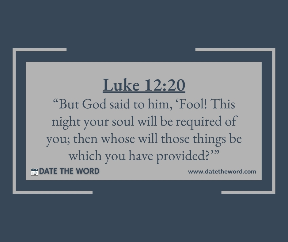 Luke 12:20 “But God said to him, ‘Fool! This night your soul will be required of you; then whose will those things be which you have provided?’”