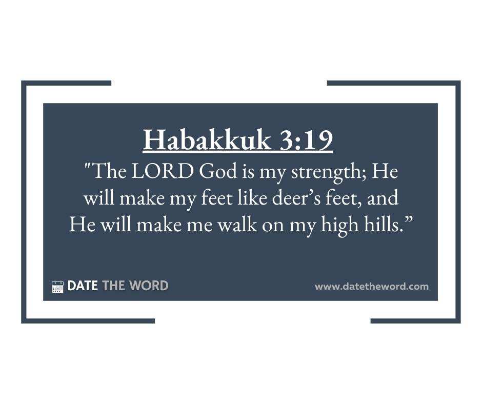 Habakkuk 3:19  “The LORD God is my strength; He will make my feet like deer’s feet, and He will make me walk on my high hills.”