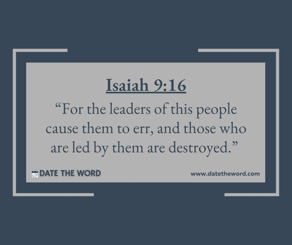 Isaiah 9:16 “For the leaders of this people cause them to err, and those who are led by them are destroyed.”