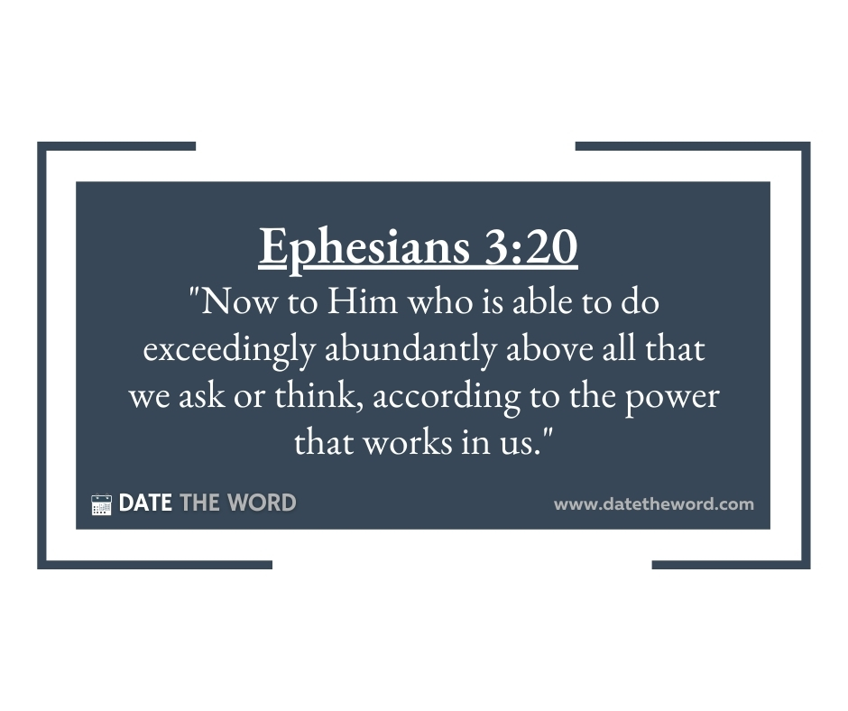 Ephesians 3:20 “Now to Him who is able to do exceedingly abundantly above all that we ask or think, according to the power that works in us.”