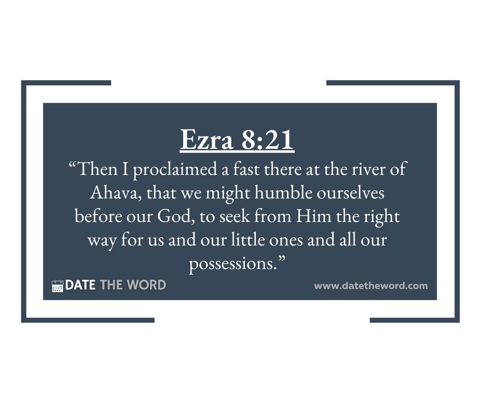 Ezra 8:21 “Then I proclaimed a fast there at the river of Ahava, that we might humble ourselves before our God, to seek from Him the right way for us and our little ones and all our possessions.”