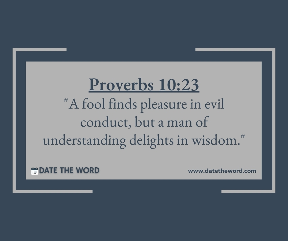 Proverbs 10:23 “A fool finds pleasure in evil conduct, but a man of understanding delights in wisdom.”