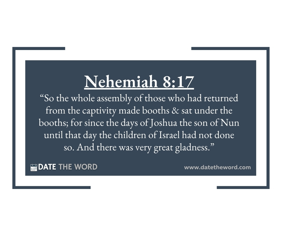 Nehemiah 8:17 “So the whole assembly of those who had returned from the captivity made booths & sat under the booths; for since the days of Joshua the son of Nun until that day the children of Israel had not done so. And there was very great gladness.”