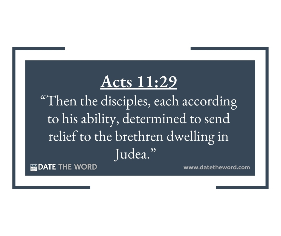 Acts 11:29 “Then the disciples, each according to his ability, determined to send relief to the brethren dwelling in Judea.”