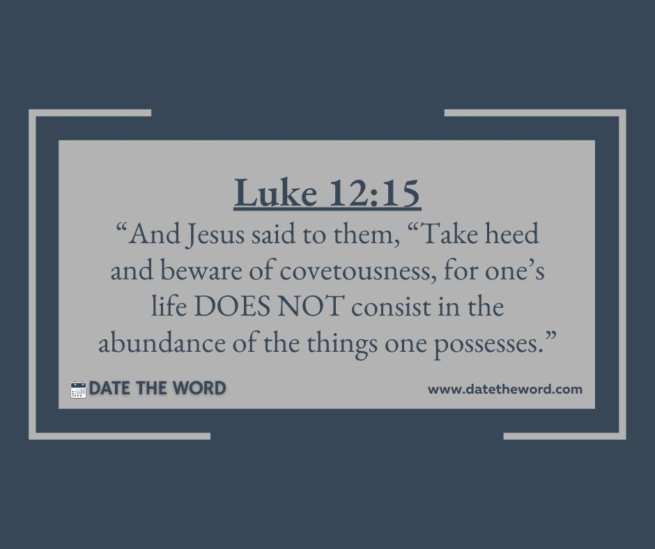 Luke 12:15. “And Jesus said to them, “Take heed and beware of covetousness, for one’s life DOES NOT consist in the abundance of the things one possesses.”