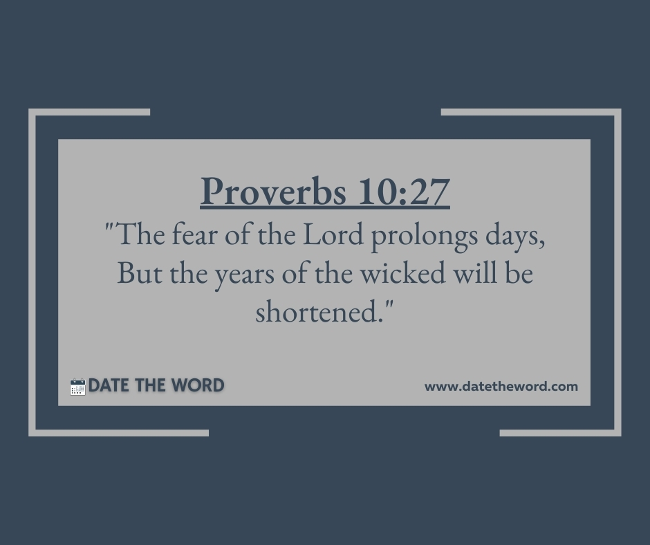 Proverbs 10:27 “The fear of the Lord prolongs days, But the years of the wicked will be shortened.”