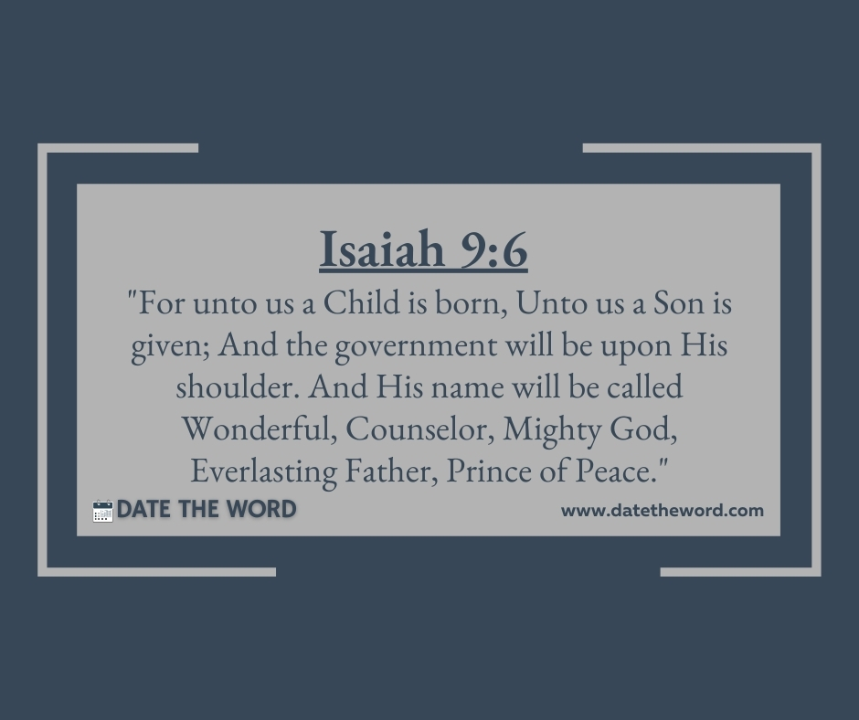 Isaiah 9:6 “For unto us a Child is born, Unto us a Son is given; And the government will be upon His shoulder. And His name will be called Wonderful, Counselor, Mighty God, Everlasting Father, Prince of Peace.”