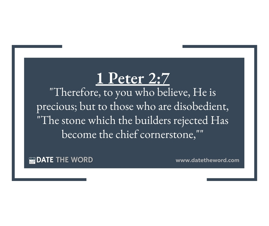 1 Peter 2:7 “Therefore, to you who believe, He is precious; but to those who are disobedient, “The stone which the builders rejected Has become the chief cornerstone,””