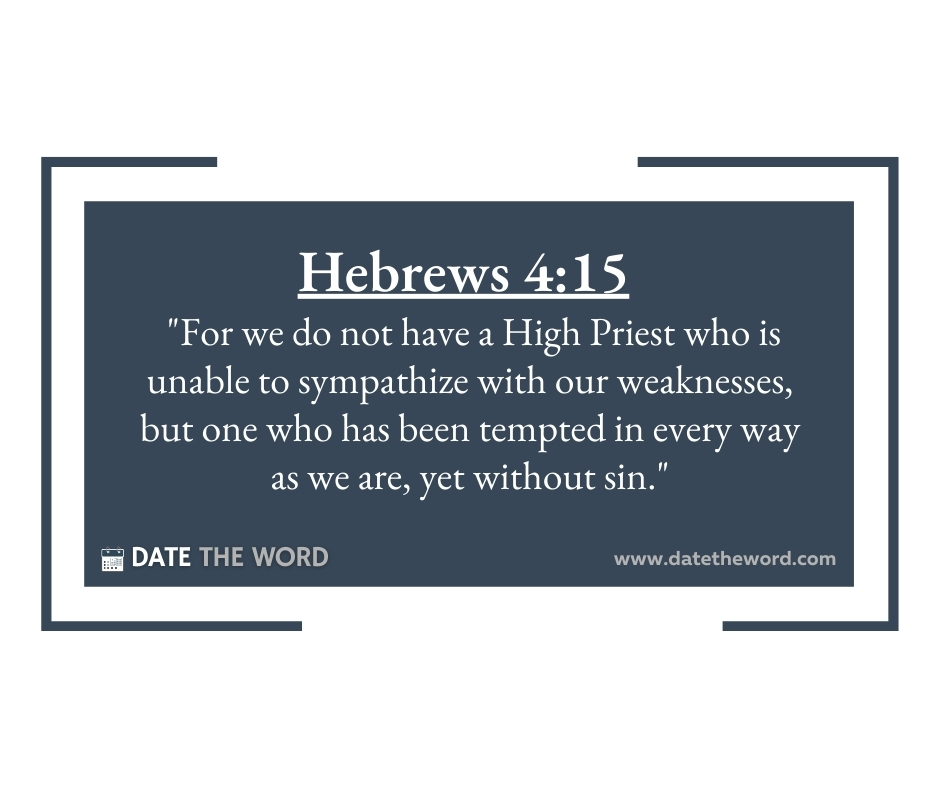 Hebrews 4:15 “For we do not have a High Priest who is unable to sympathize with our weaknesses, but one who has been tempted in every way as we are, yet without sin.”