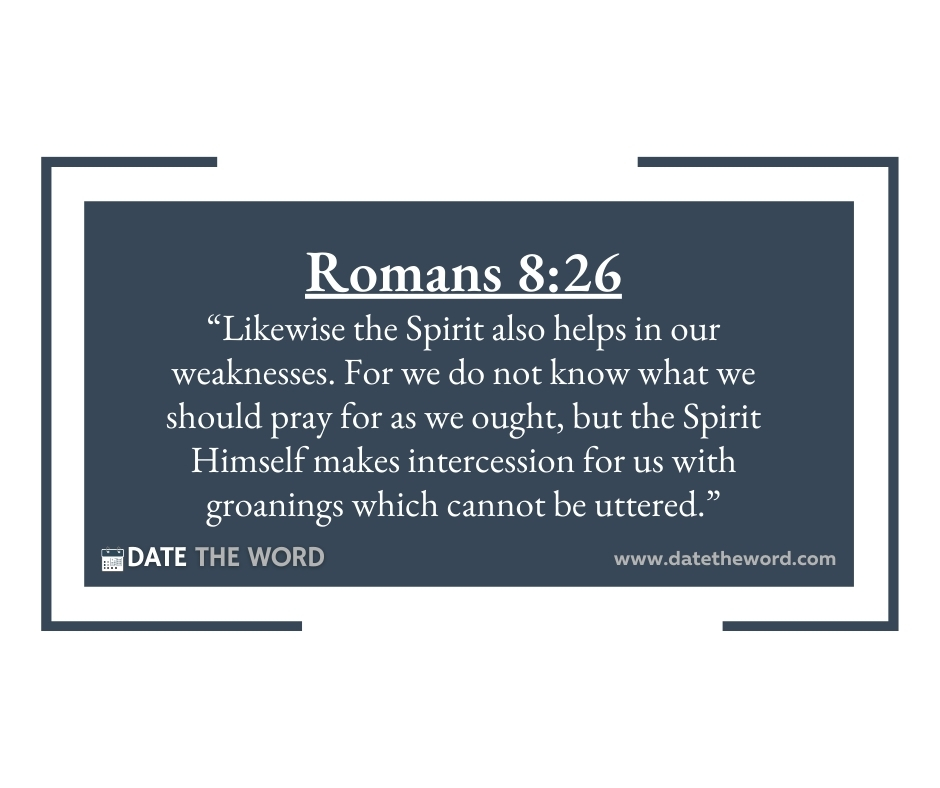 Romans 8:26 “Likewise the Spirit also helps in our weaknesses. For we do not know what we should pray for as we ought, but the Spirit Himself makes intercession for us with groanings which cannot be uttered.”
