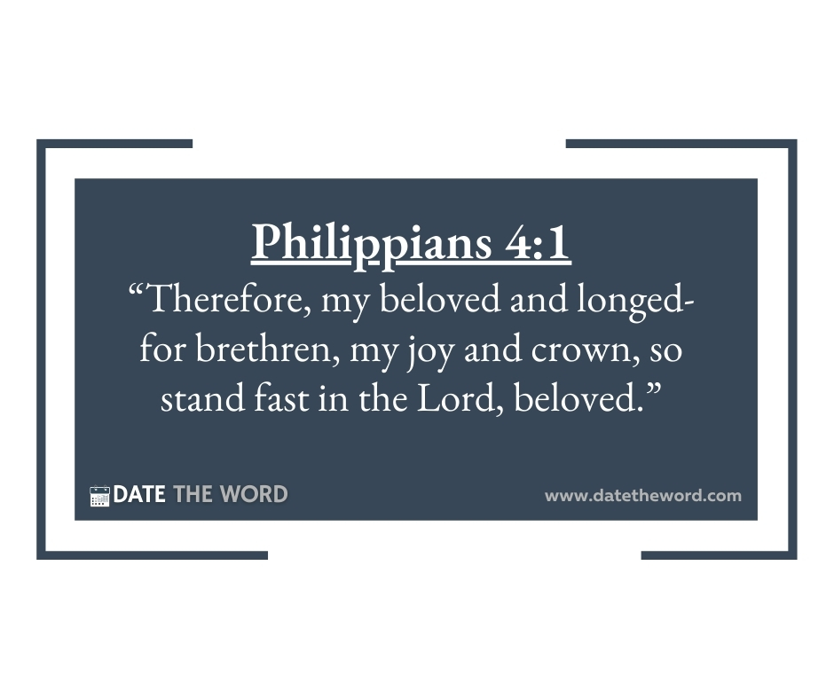 Philippians 4:1 “Therefore, my beloved and longed-for brethren, my joy and crown, so stand fast in the Lord, beloved.”