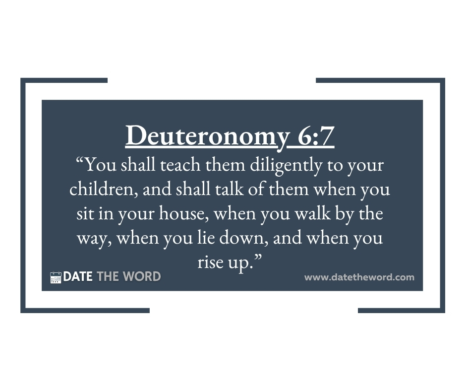 Deuteronomy 6:7 “You shall teach them diligently to your children, and shall talk of them when you sit in your house, when you walk by the way, when you lie down, and when you rise up.”