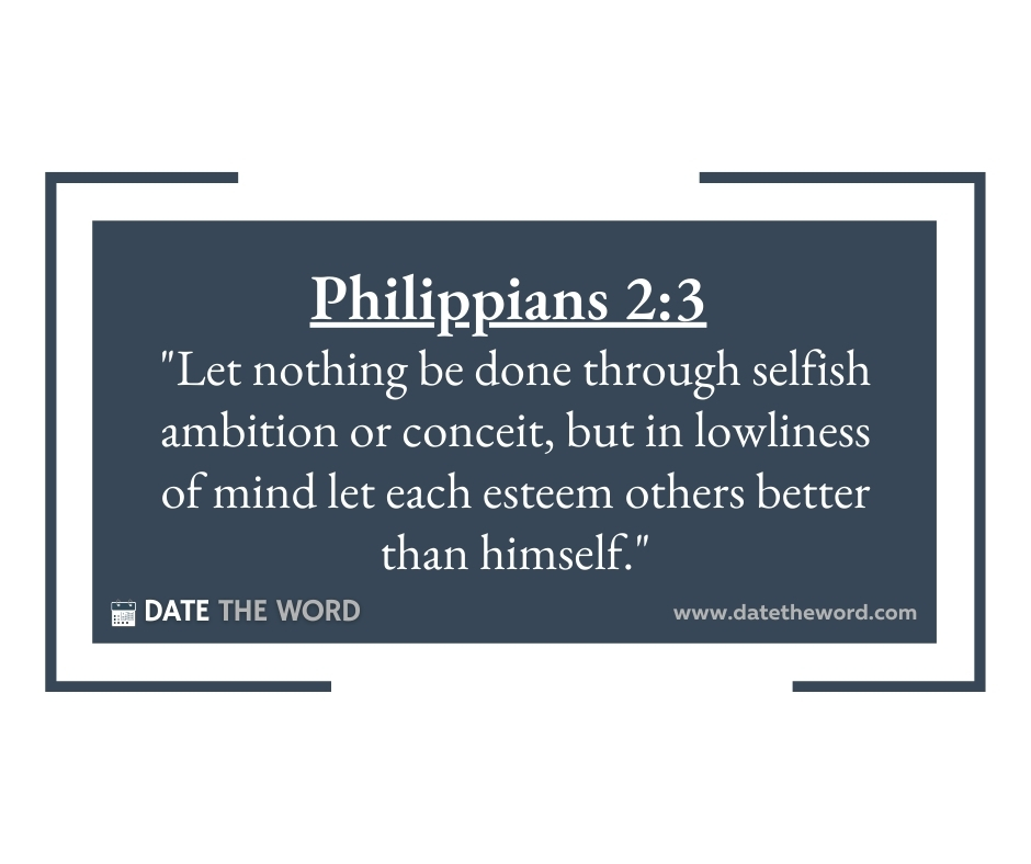 Philippians 2:3 “Let nothing be done through selfish ambition or conceit, but in lowliness of mind let each esteem others better than himself.”