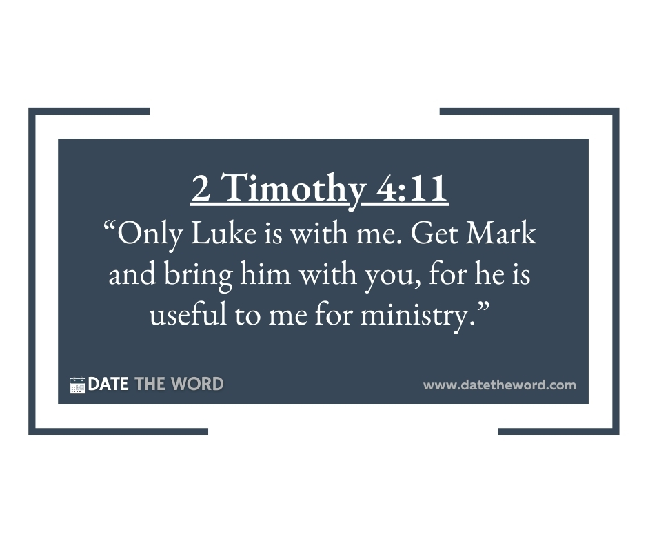 2 Timothy 4:11 “Only Luke is with me. Get Mark and bring him with you, for he is useful to me for ministry.”