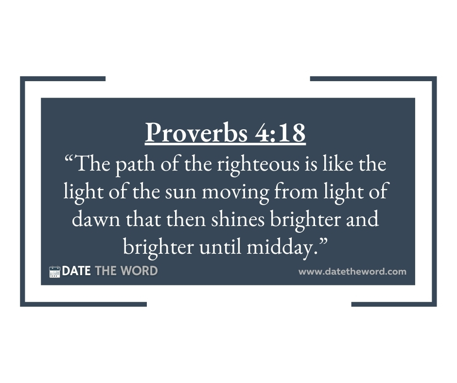 Proverbs 4:18 “The path of the righteous is like the light of the sun moving from light of dawn that then shines brighter and brighter until midday.”