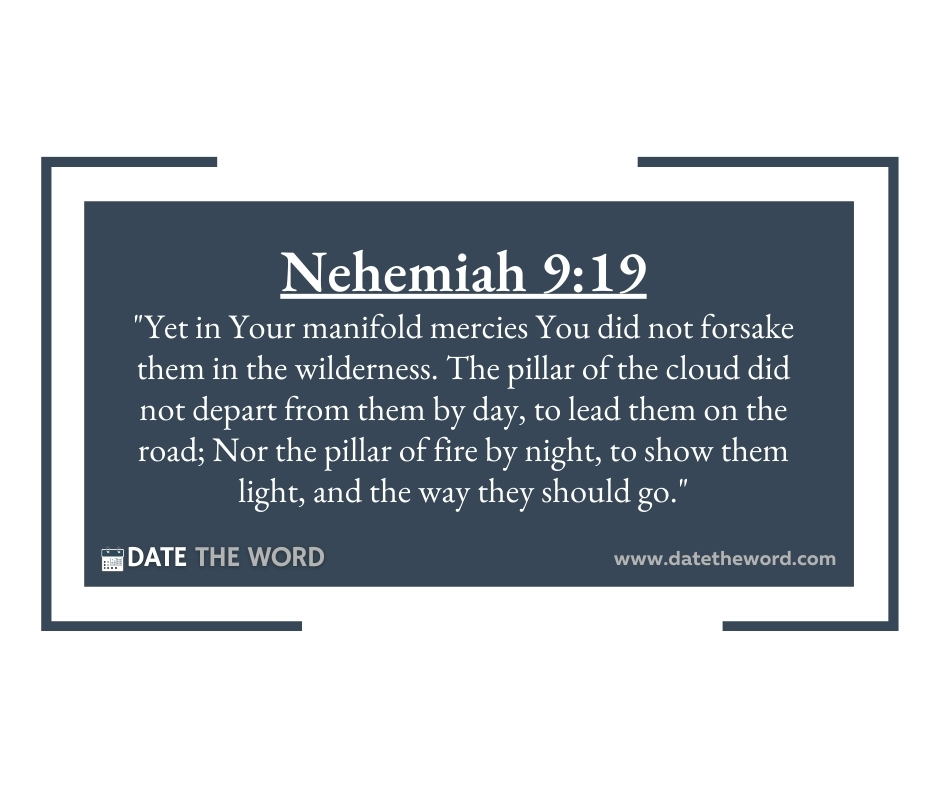 Nehemiah 9:19 “Yet in Your manifold mercies You did not forsake them in the wilderness. The pillar of the cloud did not depart from them by day, to lead them on the road; Nor the pillar of fire by night, to show them light, and the way they should go.”