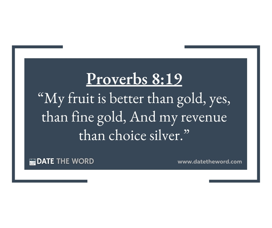 Proverbs 8:19 “My fruit is better than gold, yes, than fine gold, And my revenue than choice silver.”