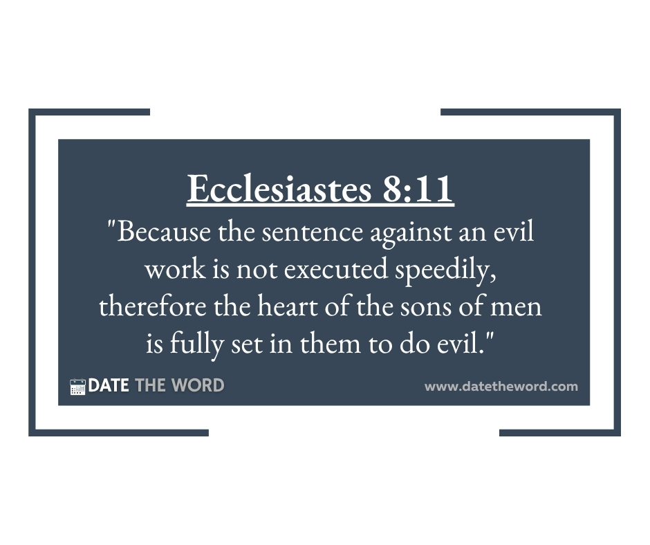 Ecclesiastes 8:11 “Because the sentence against an evil work is not executed speedily, therefore the heart of the sons of men is fully set in them to do evil.”