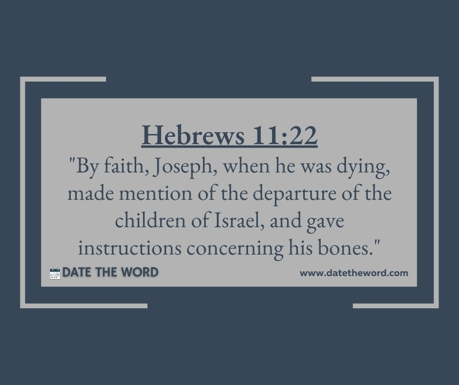 Hebrews 11:22 “By faith, Joseph, when he was dying, made mention of the departure of the children of Israel, and gave instructions concerning his bones.”