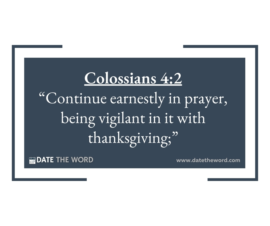 Colossians 4:2 “Continue earnestly in prayer, being vigilant in it with thanksgiving;”