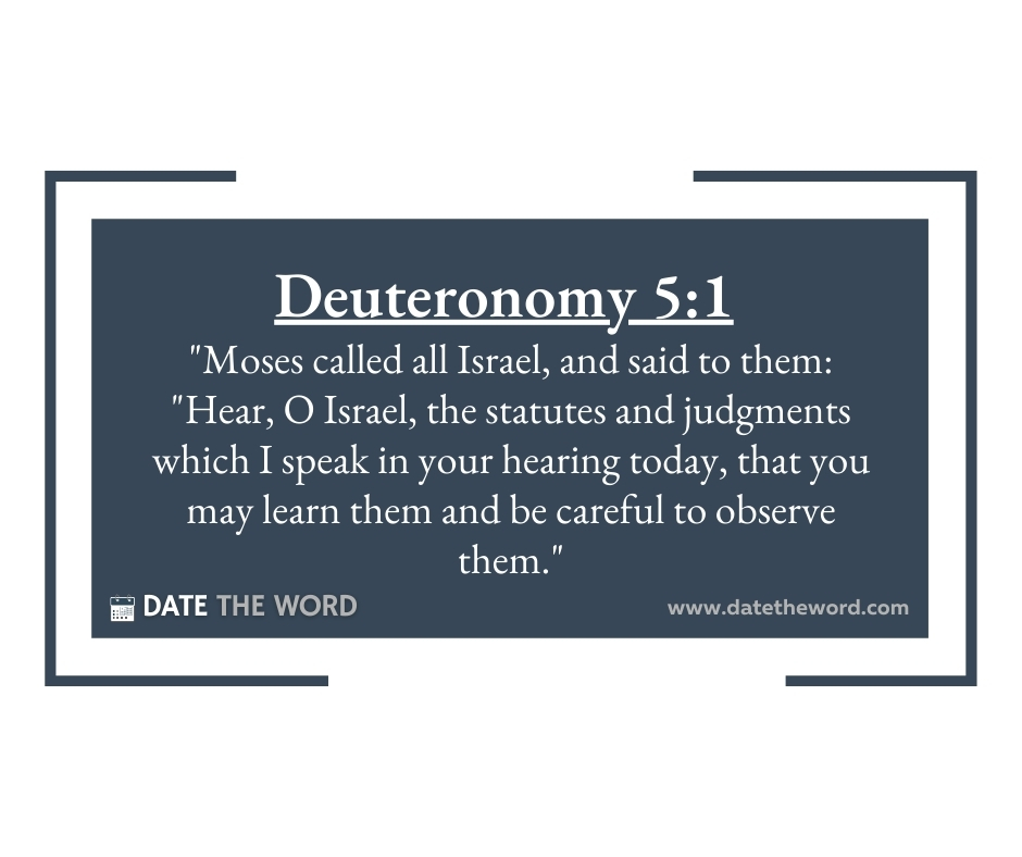 Deuteronomy 5:1 “Moses called all Israel, and said to them: “Hear, O Israel, the statutes and judgments which I speak in your hearing today, that you may learn them and be careful to observe them.”