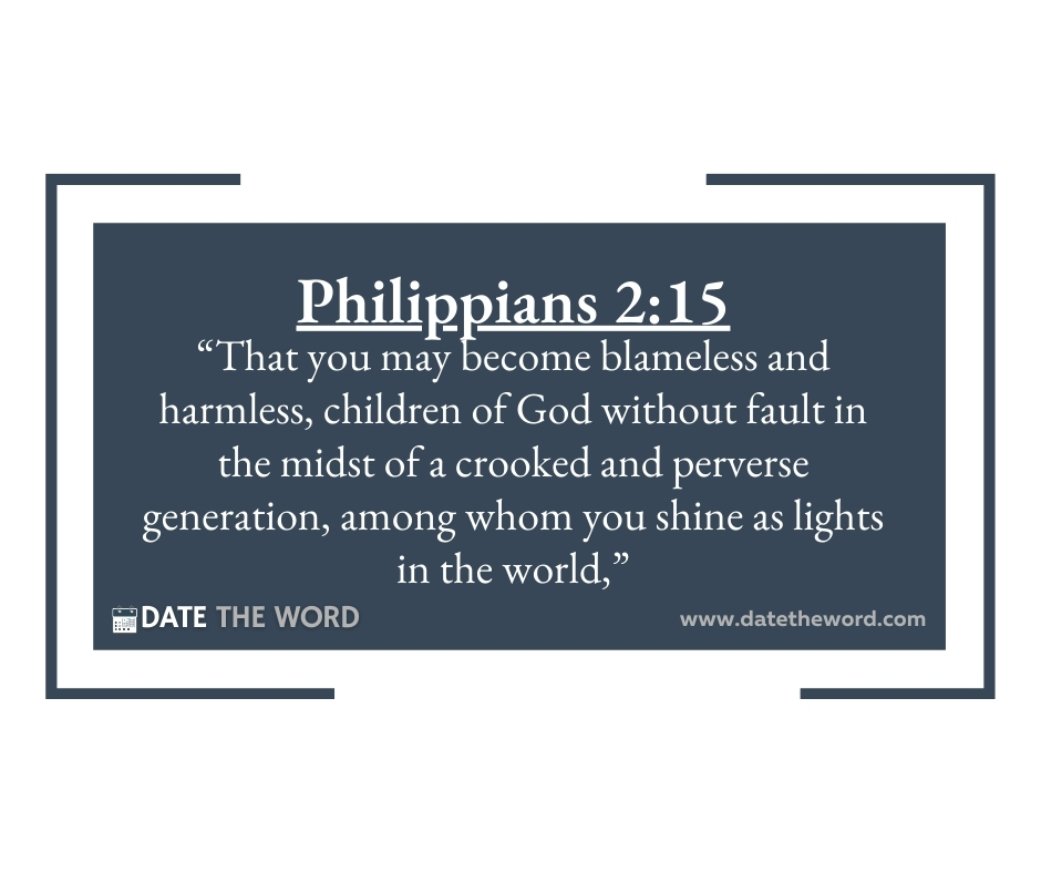 Philippians 2:15 “That you may become blameless and harmless, children of God without fault in the midst of a crooked and perverse generation, among whom you shine as lights in the world,”