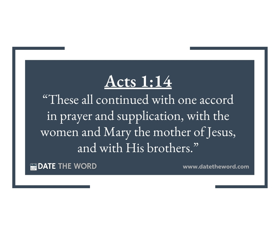 Acts 1:14 “These all continued with one accord in prayer and supplication, with the women and Mary the mother of Jesus, and with His brothers.”