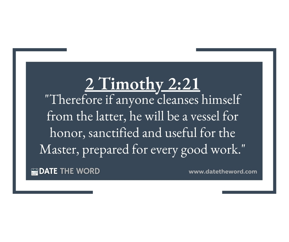 2 Timothy 2:21 “Therefore if anyone cleanses himself from the latter, he will be a vessel for honor, sanctified and useful for the Master, prepared for every good work.”