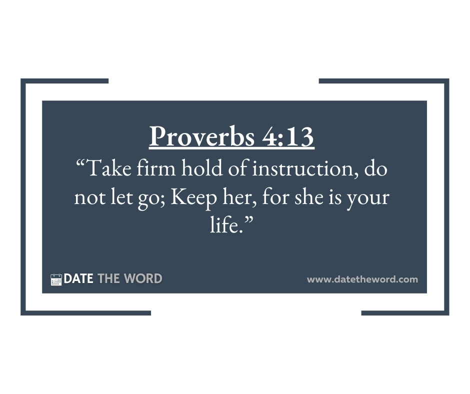 Proverbs 4:13 “Take firm hold of instruction, do not let go; Keep her, for she is your life.”