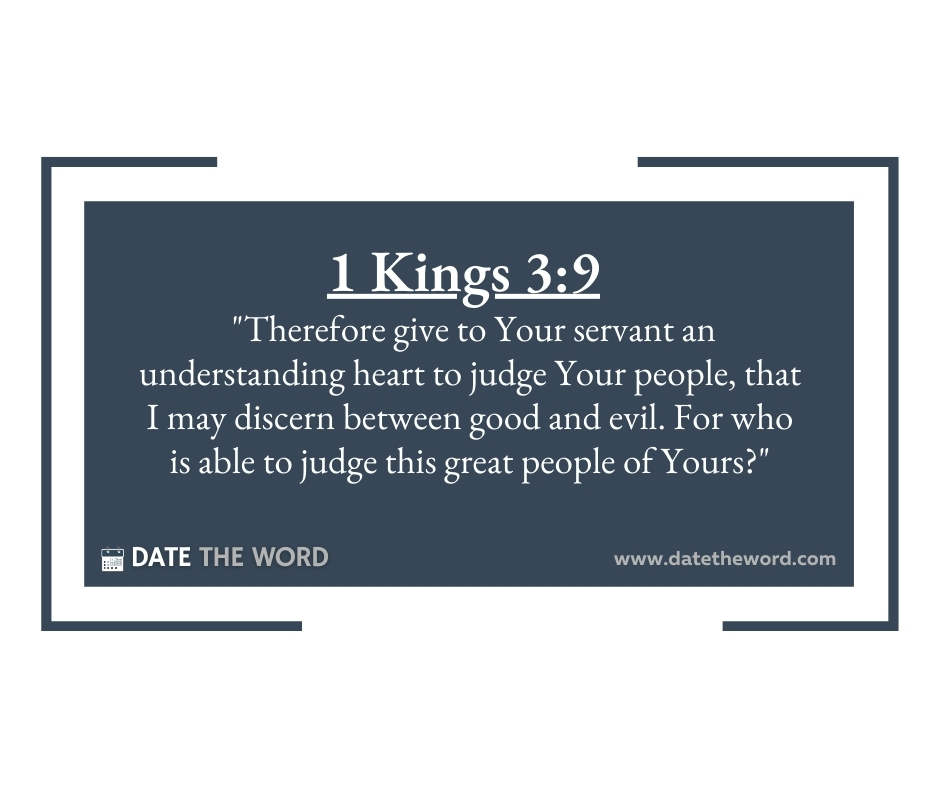 1 Kings 3:9 “Therefore give to Your servant an understanding heart to judge Your people, that I may discern between good and evil. For who is able to judge this great people of Yours?”