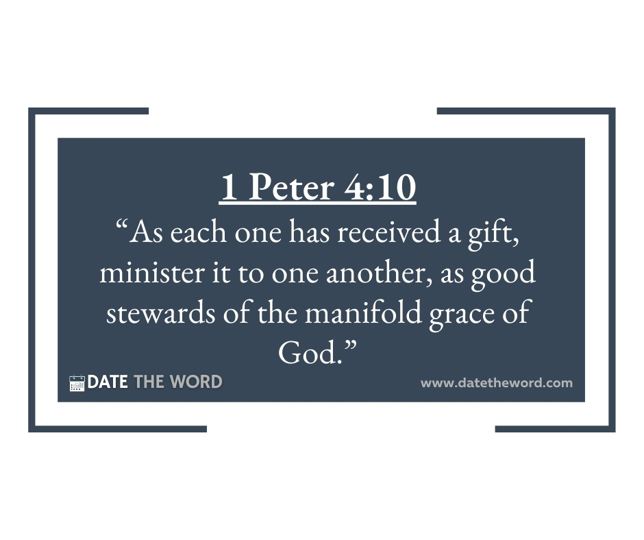 1 Peter 4:10 “As each one has received a gift, minister it to one another, as good stewards of the manifold grace of God.”