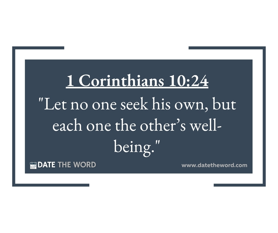 1 Corinthians 10:24 “Let no one seek his own, but each one the other’s well-being.”