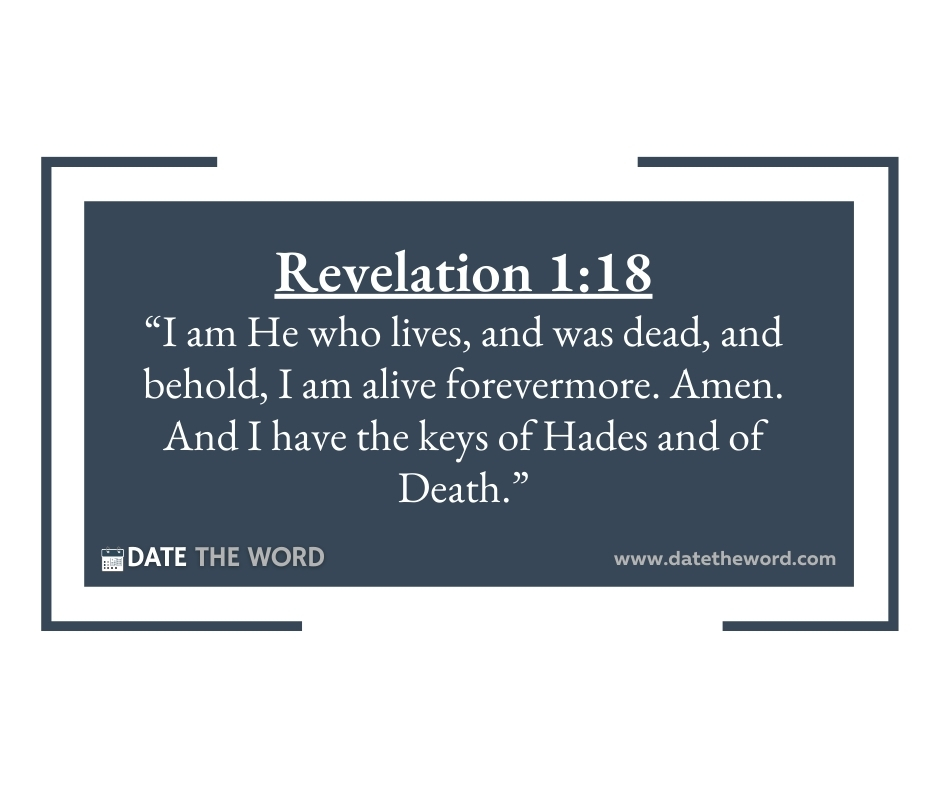 Revelation 1:18 “I am He who lives, and was dead, and behold, I am alive forevermore. Amen. And I have the keys of Hades and of Death.”