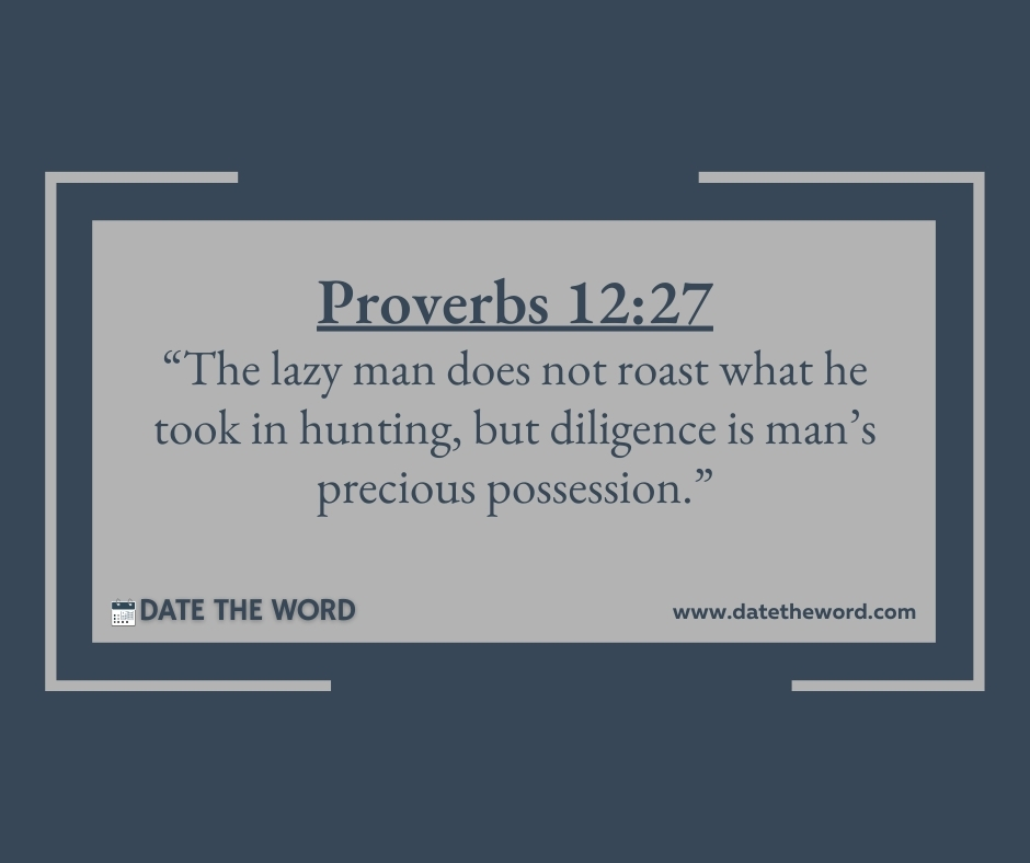 Proverbs 12:27 “The lazy man does not roast what he took in hunting, but diligence is man’s precious possession.”
