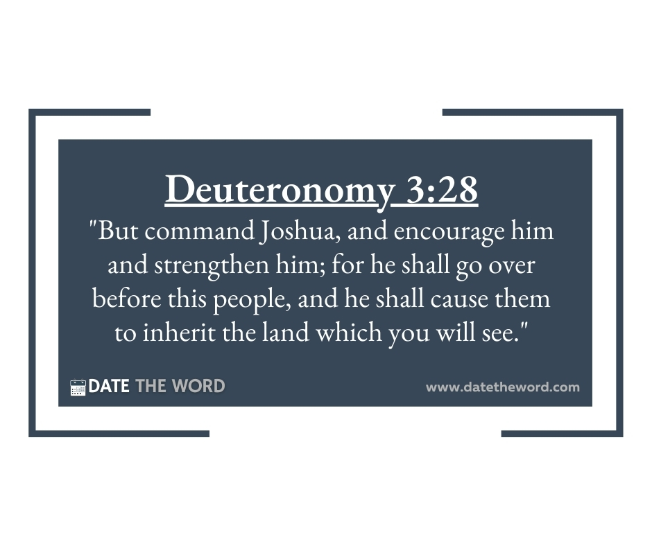 Deuteronomy 3:28 “But command Joshua, and encourage him and strengthen him; for he shall go over before this people, and he shall cause them to inherit the land which you will see.”