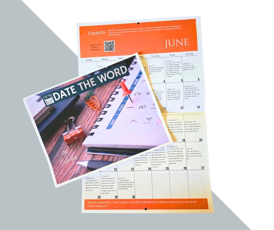 2026 Wall Calendar with a Verse for every date, a focus chapter and a “Dwayneism” (a word of wisdom) for each month.  Shipping and Handling Costs are included in price.