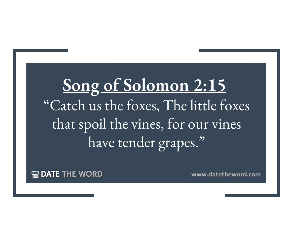 Song of Solomon 2:15 says, “Catch us the foxes, The little foxes that spoil the vines, for our vines have tender grapes.”