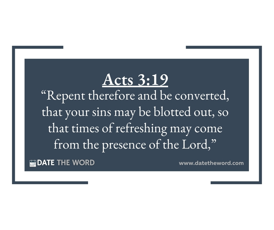 Acts 3:19 “Repent therefore and be converted, that your sins may be blotted out, so that times of refreshing may come from the presence of the Lord,”