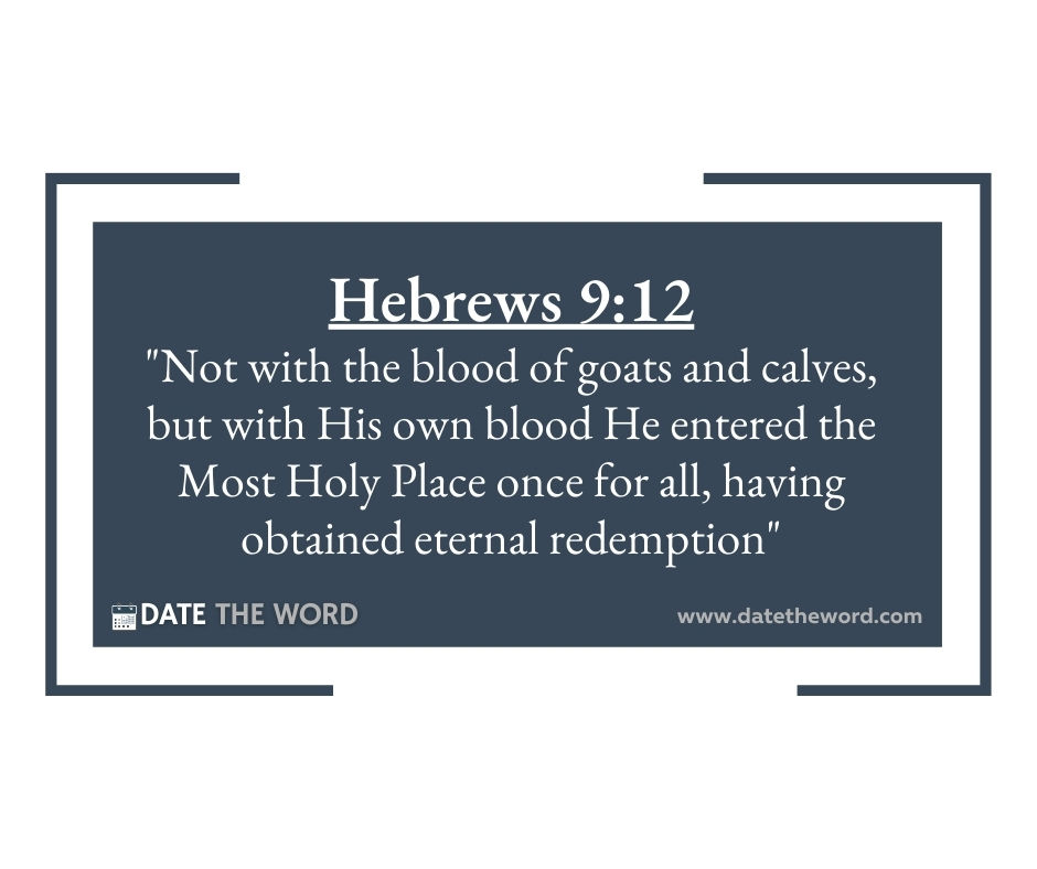 Hebrews 9:12 “Not with the blood of goats and calves, but with His own blood He entered the Most Holy Place once for all, having obtained eternal redemption”