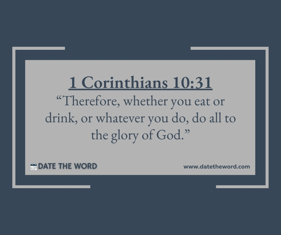 1 Corinthians 10:31 “Therefore, whether you eat or drink, or whatever you do, do all to the glory of God.”