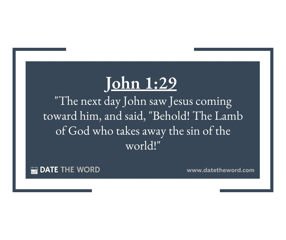 John 1:29 “The next day John saw Jesus coming toward him, and said, “Behold! The Lamb of God who takes away the sin of the world!”