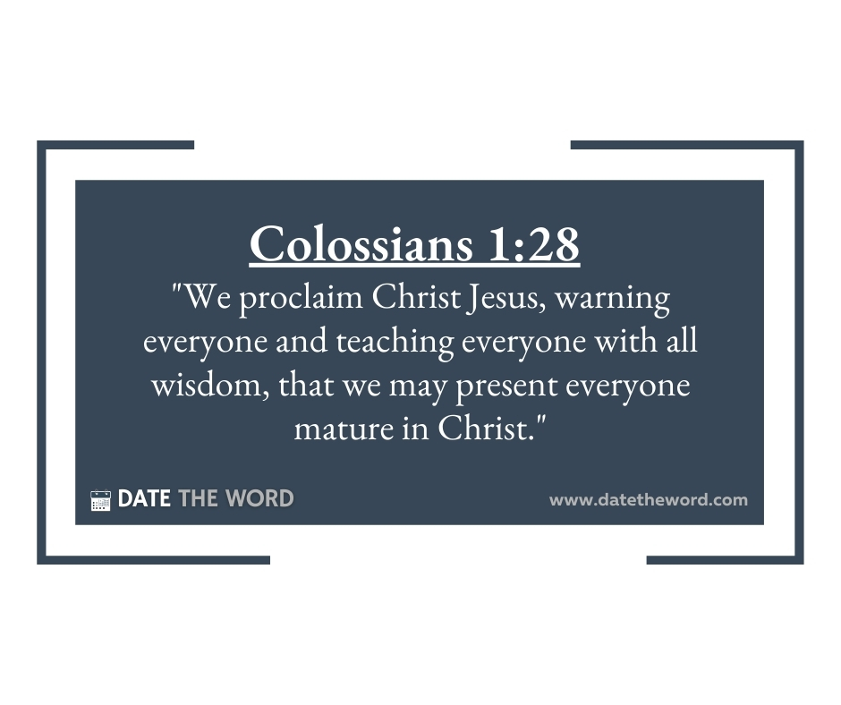 Colossians 1:28 “We proclaim Christ Jesus, warning everyone and teaching everyone with all wisdom, that we may present everyone mature in Christ.”