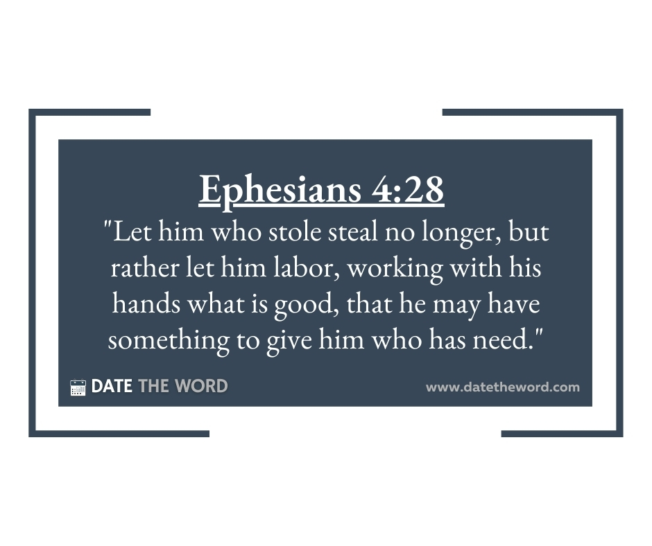 Ephesians 4:28 “Let him who stole steal no longer, but rather let him labor, working with his hands what is good, that he may have something to give him who has need.”