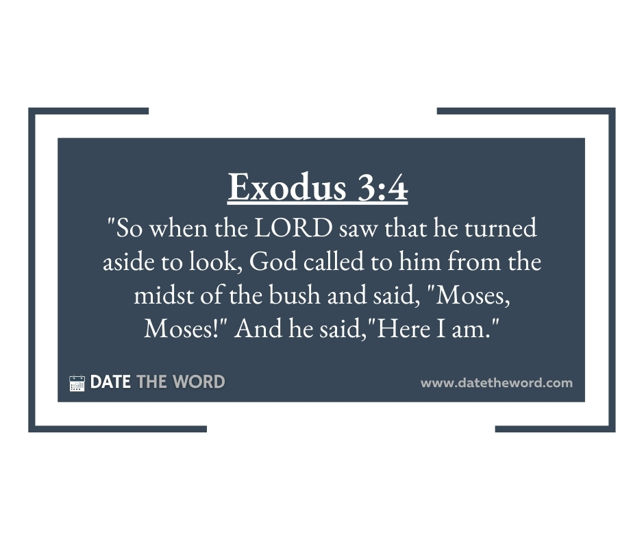 Exodus 3:4 “So when the LORD saw that he turned aside to look, God called to him from the midst of the bush and said, “Moses, Moses!” And he said,”Here I am.”