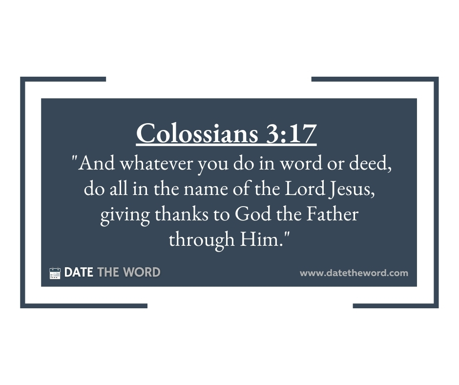 Colossians 3:17 “And whatever you do in word or deed, do all in the name of the Lord Jesus, giving thanks to God the Father through Him.”