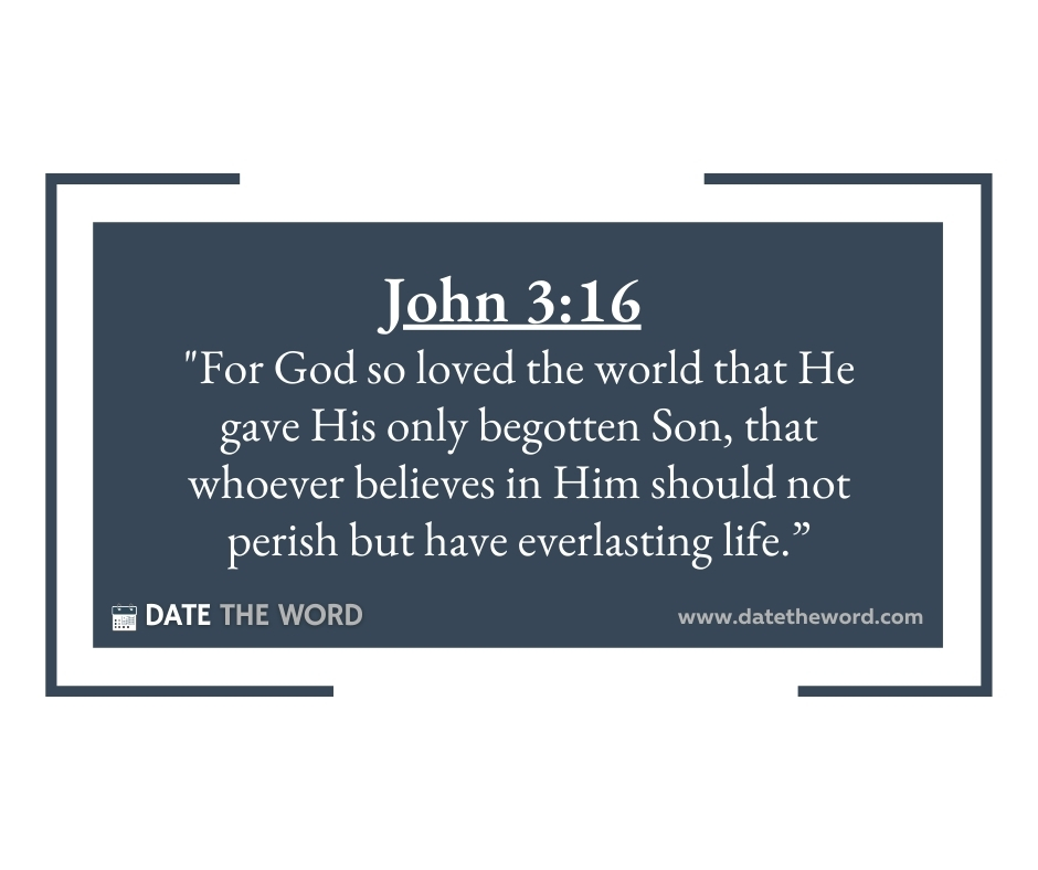 John 3:16 “For God so loved the world that He gave His only begotten Son, that whoever believes in Him should not perish but have everlasting life.”