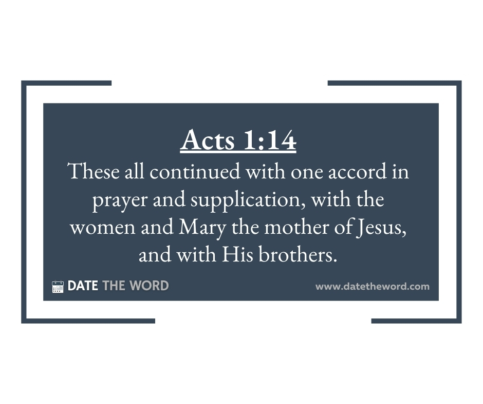 Acts 1:14 “These all continued with one accord in prayer and supplication, with the women and Mary the mother of Jesus, and with His brothers.”