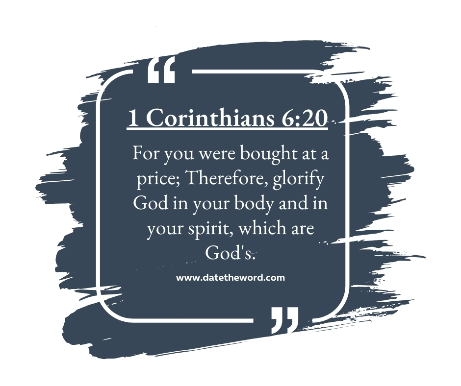 1 Corinthians 6:20 “For you were bought at a price; Therefore, glorify God in your body and in your spirit, which are God’s.”