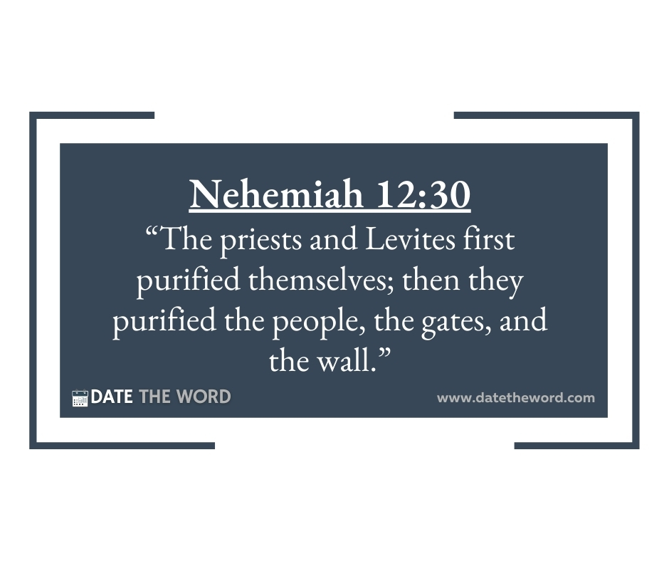 Nehemiah 12:30 “The priests and Levites first purified themselves; then they purified the people, the gates, and the wall.”
